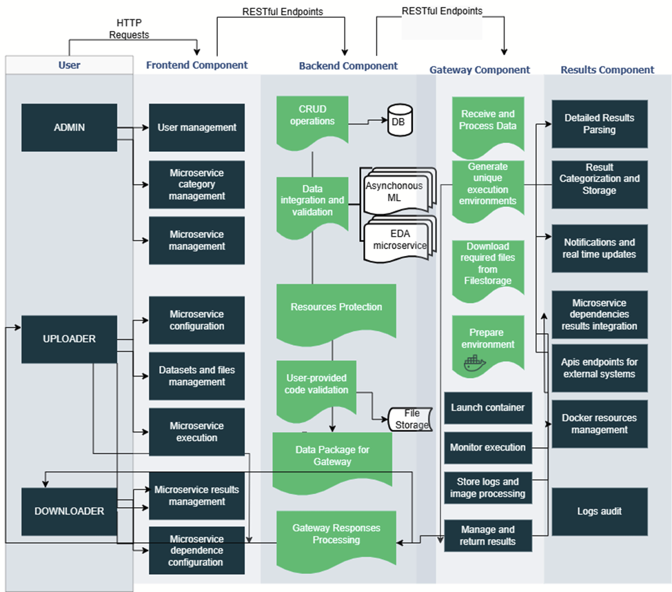 The 2025 stage of the OPEN4CEC project aimed at developing and consolidating the reference architecture for the service-oriented collaborative platform for energy communities (CEC). The activities aimed at the creation of API components, integration via API Gateway and the implementation of microservices for the L1 and L2 functional levels of the MRA modular architecture. The OPEN4CEC platform is designed as a scalable, secure and flexible ecosystem, allowing the loading, running and monitoring of microservices in isolated Docker containers. Robust mechanisms for authentication, categorization and execution tracking were implemented, as well as complete functional flows for the management of microservices and their results.