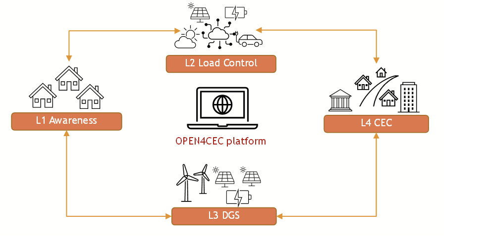 Activity A1.2 focused on the design and modeling of microservices specific to the L1 level of the proposed architecture, aiming to increase awareness, acceptance and adoption of the CEC by consumers. The developed microservices include tools for simulating consumer behaviors, the use of gamification to motivate active participation and the implementation of incentives such as Demand Side Management (DSM) and Demand Response (DR). Within this activity, models were also proposed for the assessment of the residential photovoltaic potential in Romania and transition scenarios for communities, from the use of renewable energy to the integration of electric heating and electric mobility. The OPEN4CEC platform, developed as a result of these activities, integrates these microservices into a scalable, adaptable and secure framework, capable of supporting both individual users and energy communities in their transition towards sustainability.